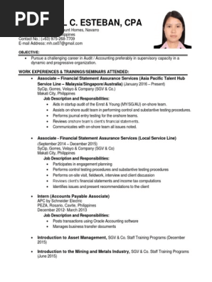 Resume Format For Cpa Philipines